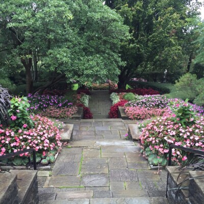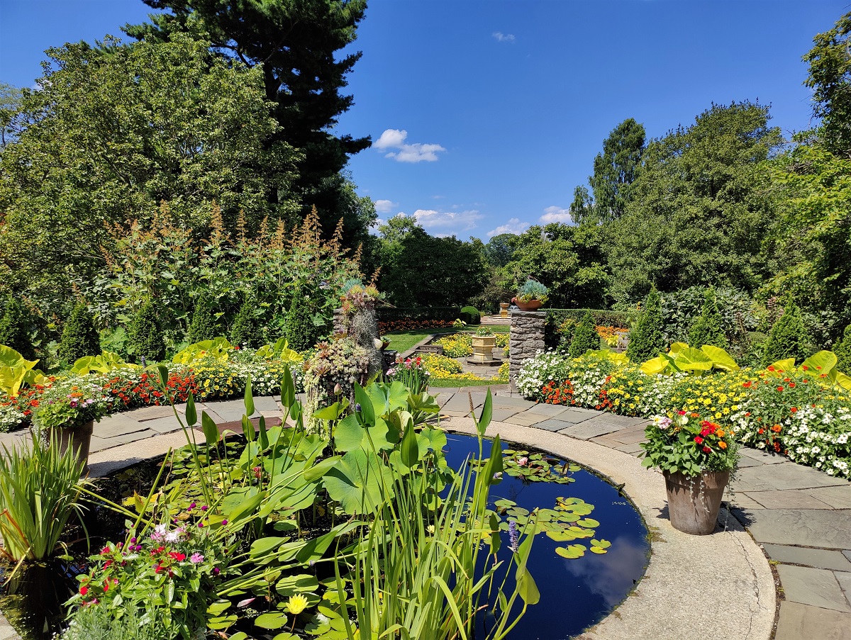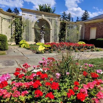 Designed by notable landscape architects Pitkin and Mott, these original gardens showcase the handcrafted style of the Arts and Crafts architectural movement. Built in 1926 alongside Kingwood Hall, Mr. King’s Formal Gardens begin at the Sunken Garden, pass through the former pool area in the Trellis Garden, and continue from the Lady of Gaillardias statue up the stairway to Pan the Piper.